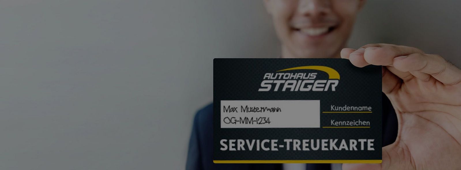 Die Kundenkarte ist ausschließlich bei Kundendienst, Service und Inspektion ab einem Rechnungswert in Höhe von 250,00 € inkl. MwSt. anwendbar. Ausgeschlossen sind Reifen, Räder, Paketpreise und sonstige Aktionen, sowie der Gebraucht und Neuwagenverkauf.